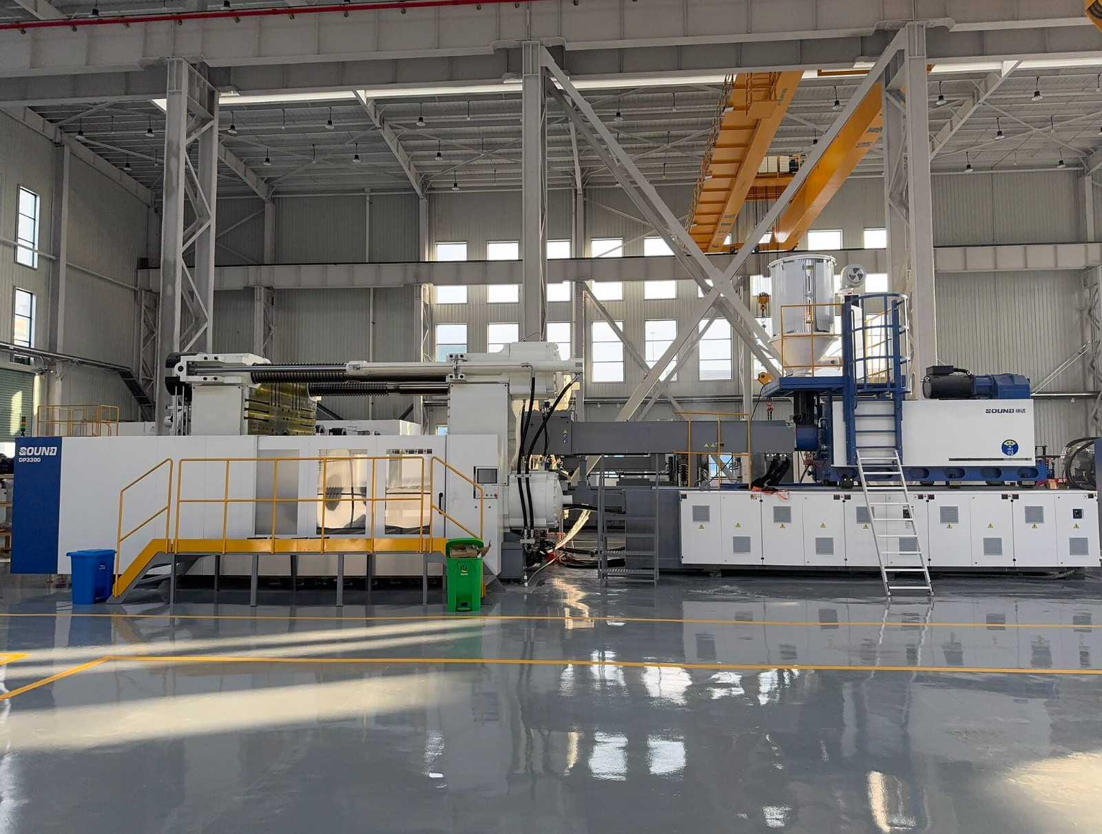 The two-platen design requires less floor space compared to traditional three-platen machines, significantly improving plant space utilization.